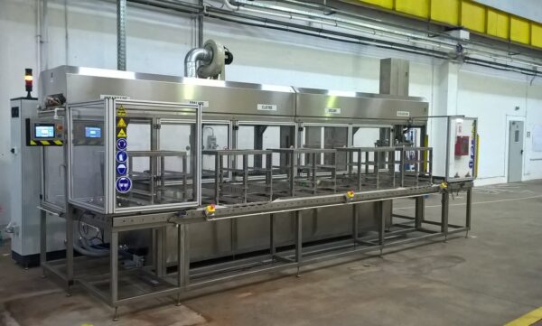 - Includ transportor automat, sincronizat cu fazele procesului de curatare